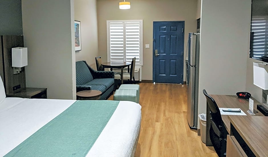 Suite King Mob Accessible Comm Assist Rollin Shower Kitchenette Sofabed Non-Smoking Full Breakfast includes a king-size bed 150-183 width plus a sofa bed.